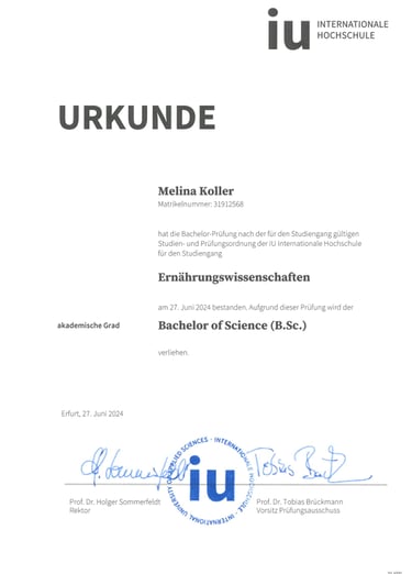 Bachelor of Science (Bsc.) in Ernährungswissenschaften