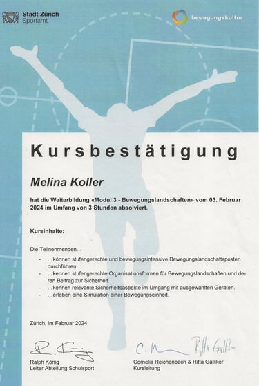 Weiterbildung Sportamt Stadt Zürich - "Modul 3 - Bewegungslandschaften"